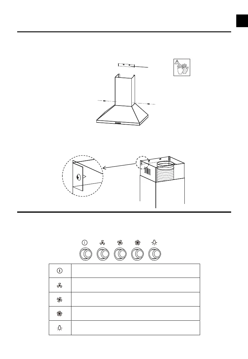 Den oberen Schornstein mit 2 Schrauben 12 (4,2 x 9,5), die mit der Haube mitgeliefert werden,