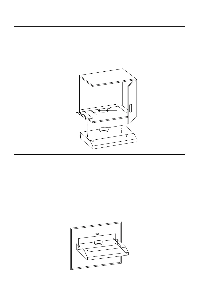 Länge von 538 mm, wobei sich das Entlüftungsloch auf der Oberseite der Dunstabzugshaube in