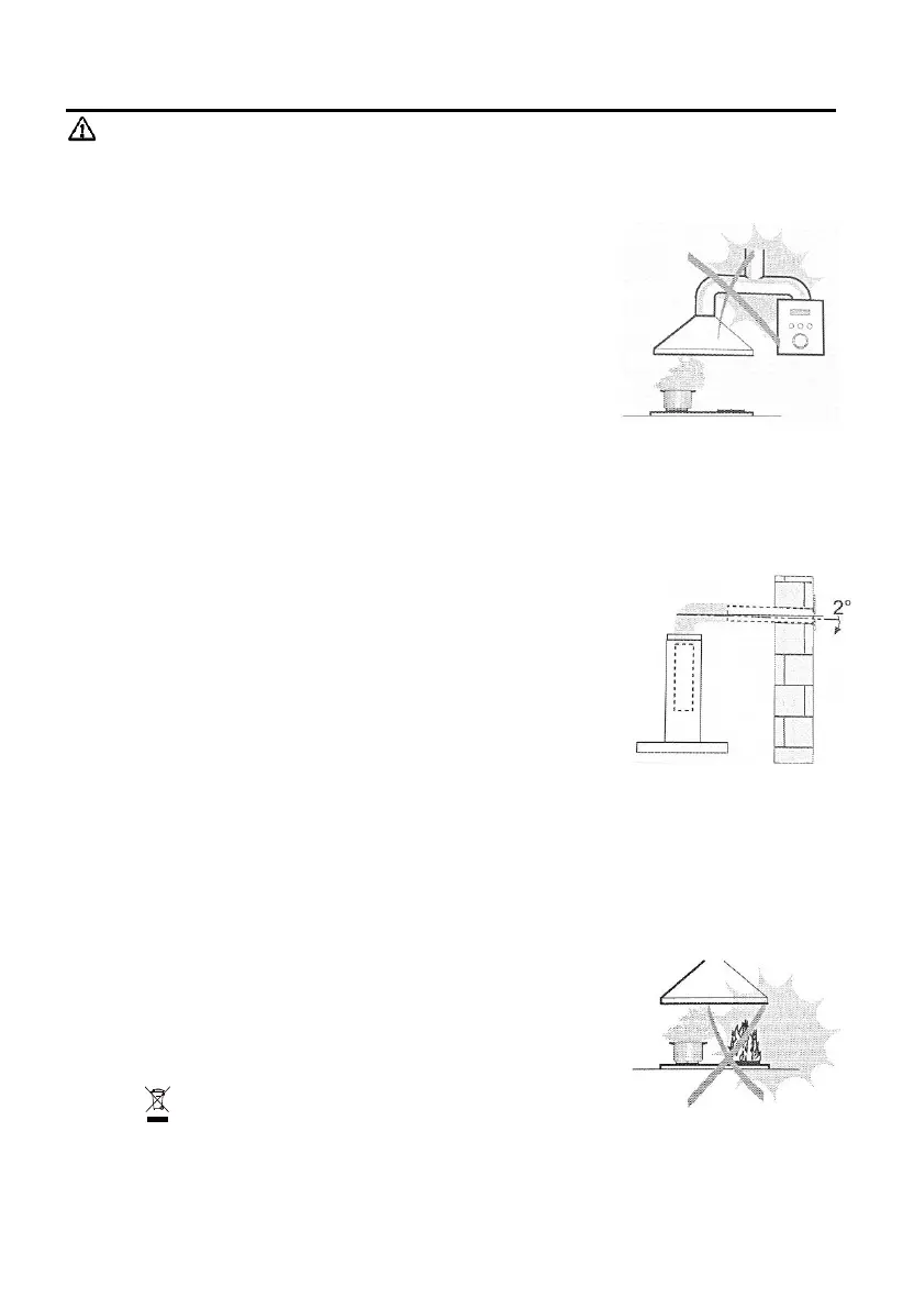 Do not connect the extractor hood to exhaust ducts carrying combustion flumes