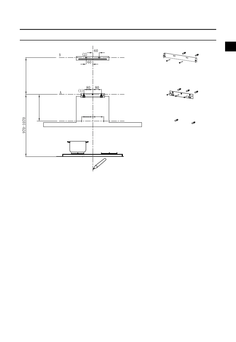 A horizontal line A at 970 – 1070 mm above the cooker top.