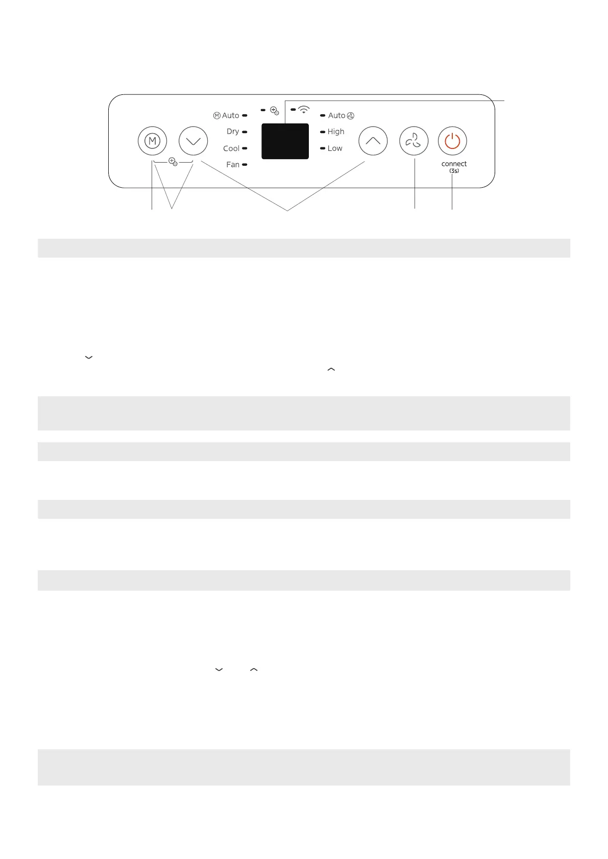 sequence that goes from AUTO, DRY, COOL and FAN, The mode indicator light illuminates under the