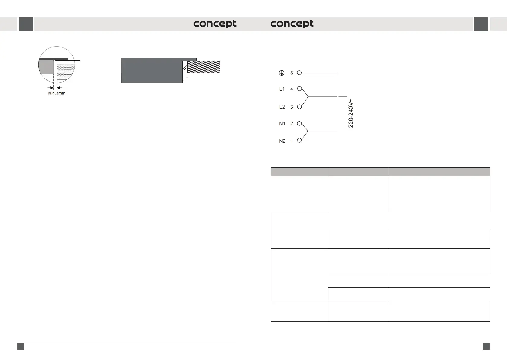 Vienfāzes vārīšanas zonas spaiļu bloka savienošana ar 3 dzīslu strāvas vadu (230V)