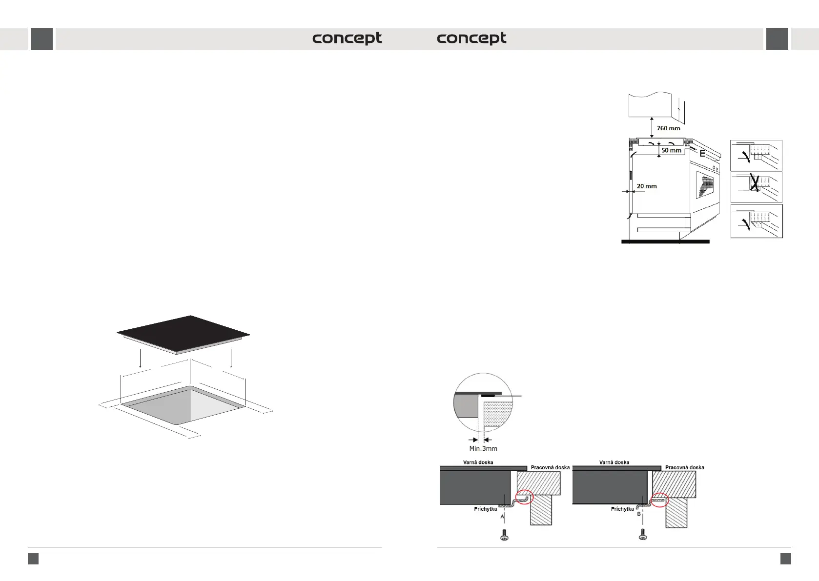 7. Ak je pod varnou doskou umiestnený spotrebič, musí byť medzi týmito spotrebičmi medzera aspoň 50 mm.