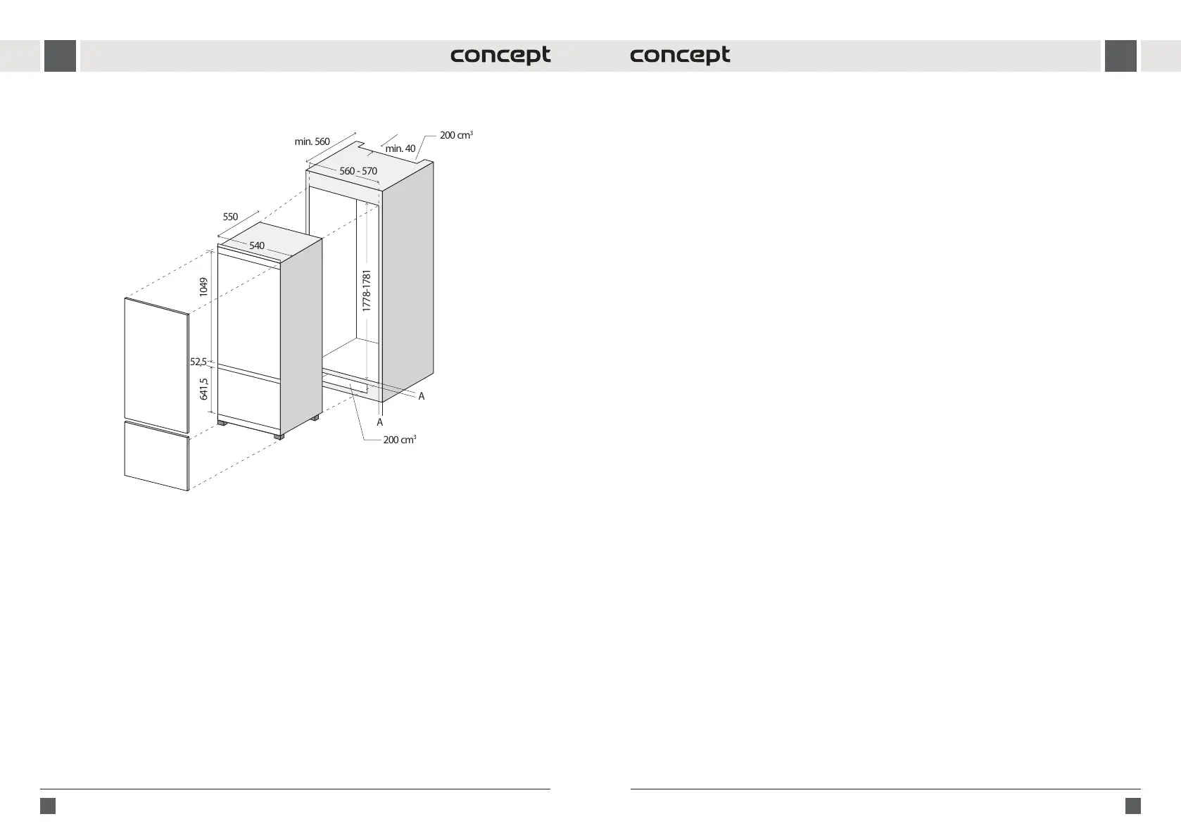 brīvai atstarpei, kā arī izgriezumam (ar ventilācijas režģi) cokola daļā zem ledusskapja.