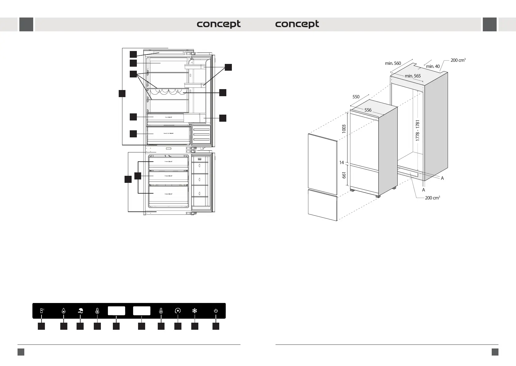również zapewnić wolną przestrzeń na górze i wycięcie (z kratką wentylacyjną) w cokole pod lodówką.