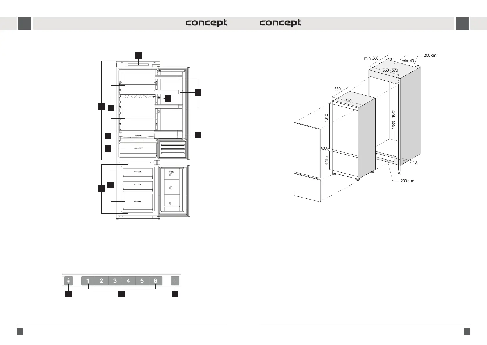brīvai atstarpei, kā arī izgriezumam (ar ventilācijas režģi) cokola daļā zem ledusskapja.