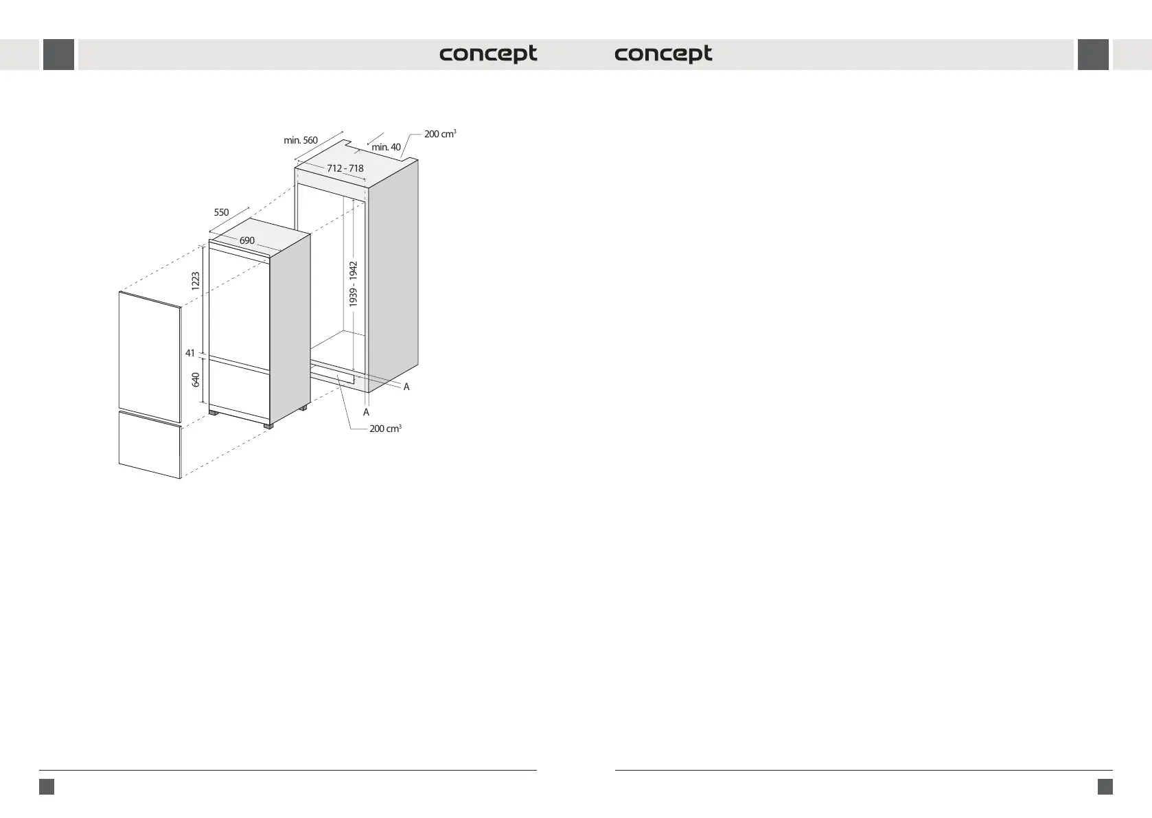 by mal byť voľný priestor a v podstavci pod chladničkou by mal byť výrez (s vetracou mriežkou).