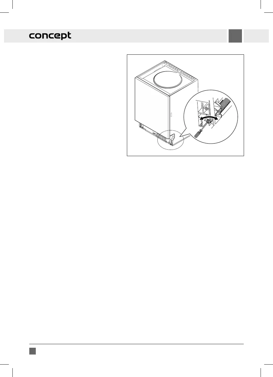 nožiček myčky otáčejte šrouby, které se nacházejí vblízkosti předních nožiček ve spodní přední straně myčky