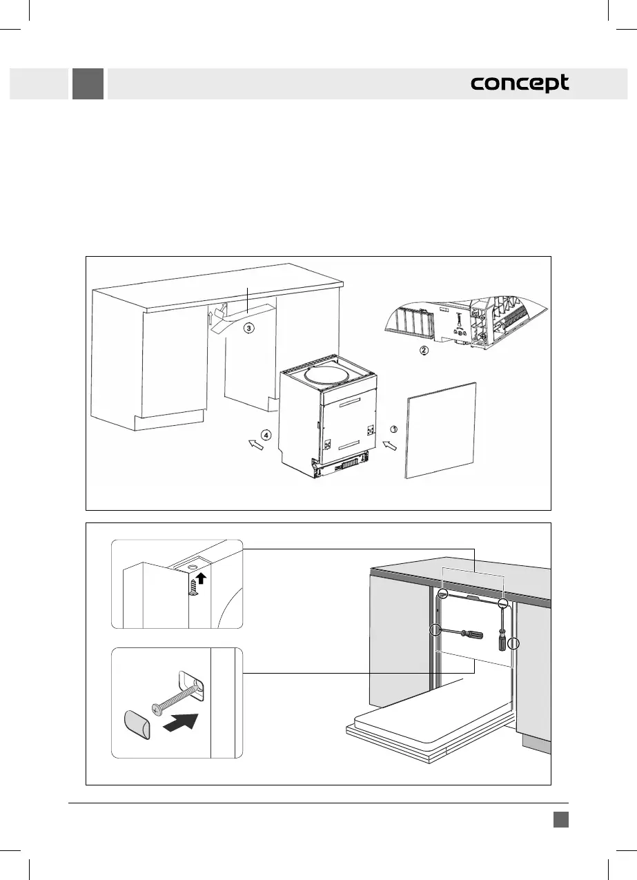 Přišroubujte boky myčky ke skříňkám (krok 7).