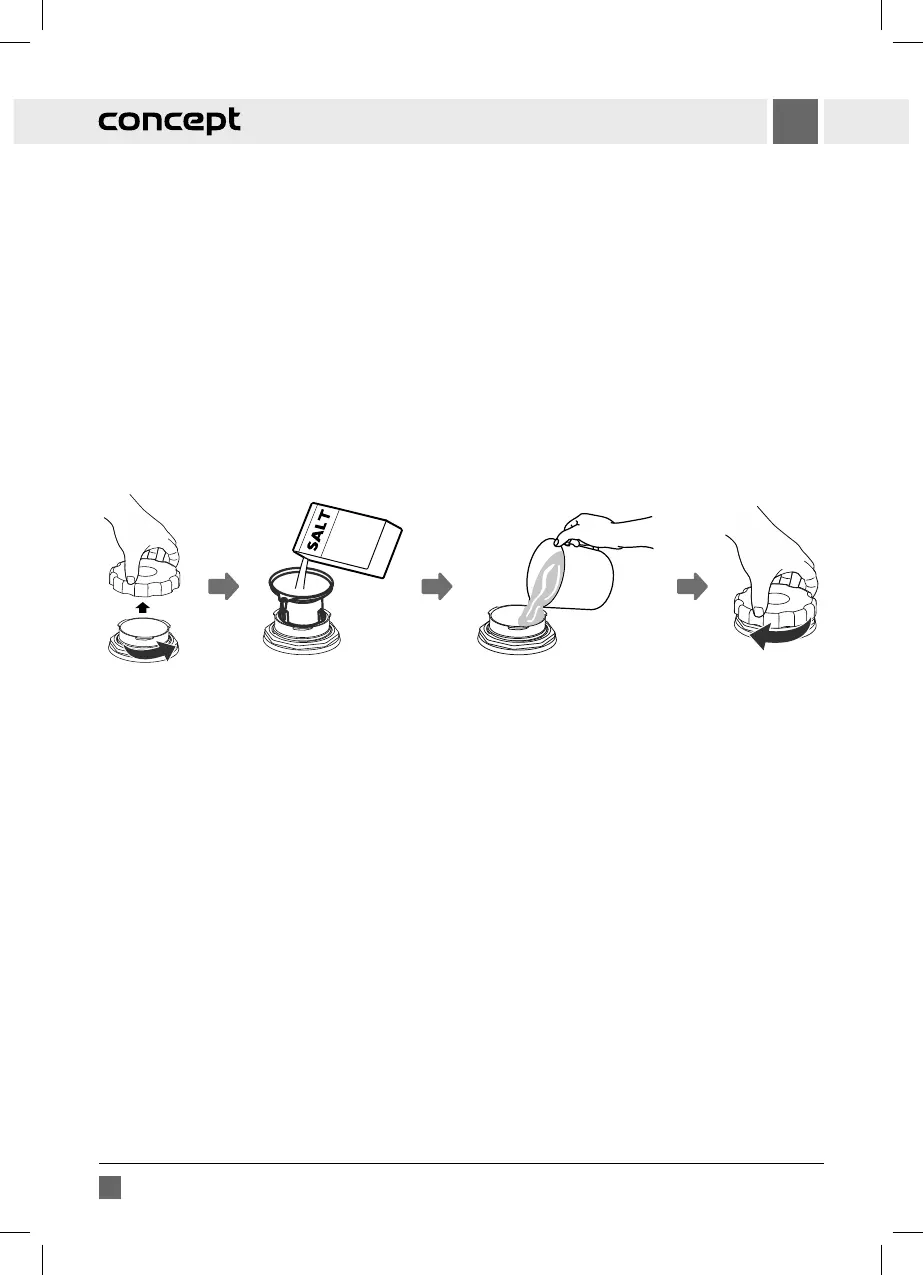 5. Po doplnění zašroubujte víko zásobníku regenerační soli.