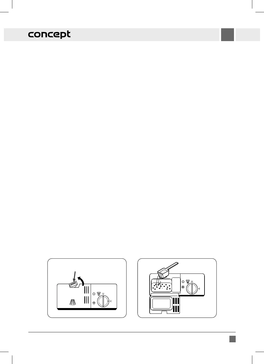 prostředku vzásobníku, může mycí prostředek navlhnout apři spuštění mycího programu se úplně nerozpustí.