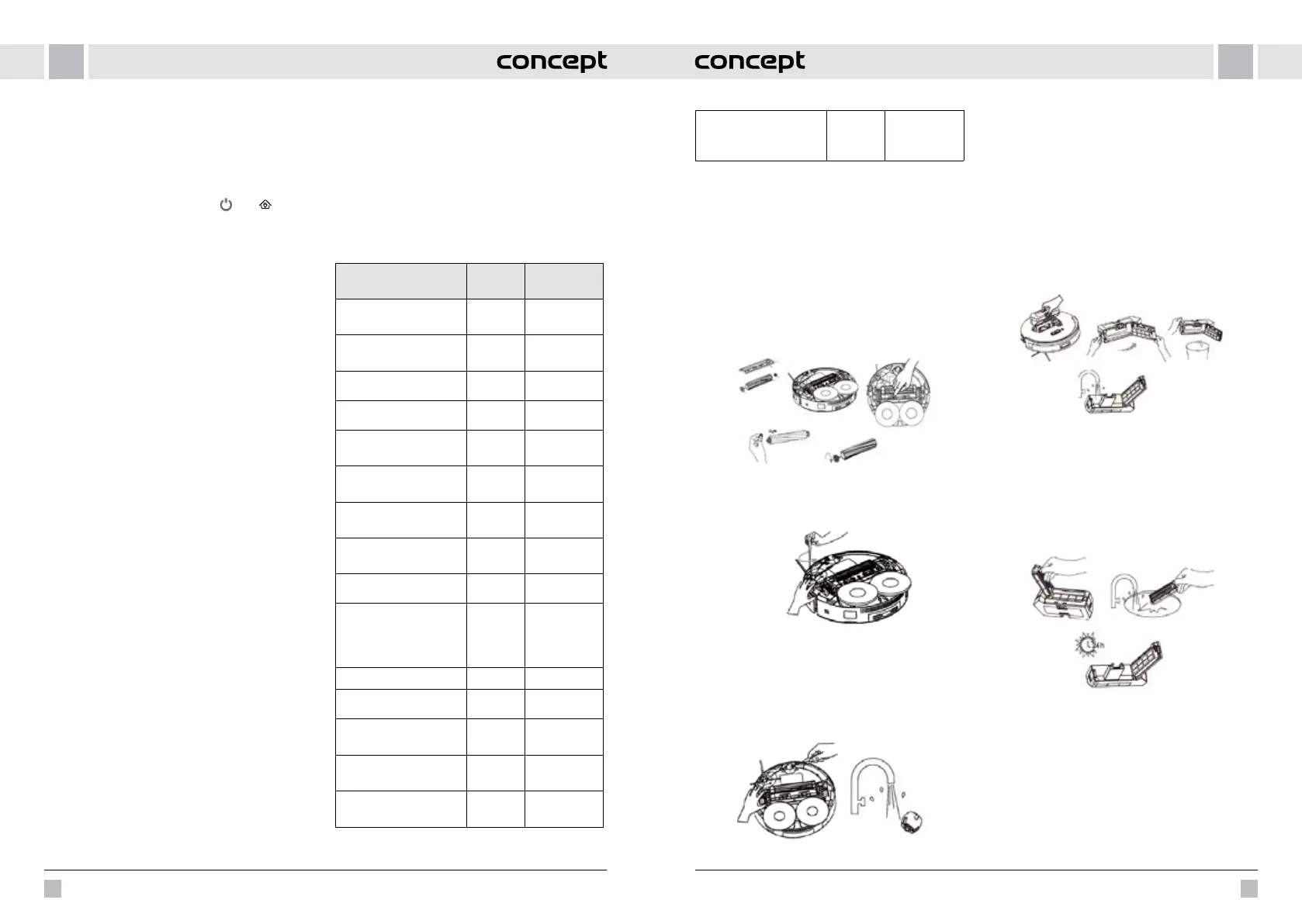 a tisztítási üzemmód váltása, a robot tisztítása stb.