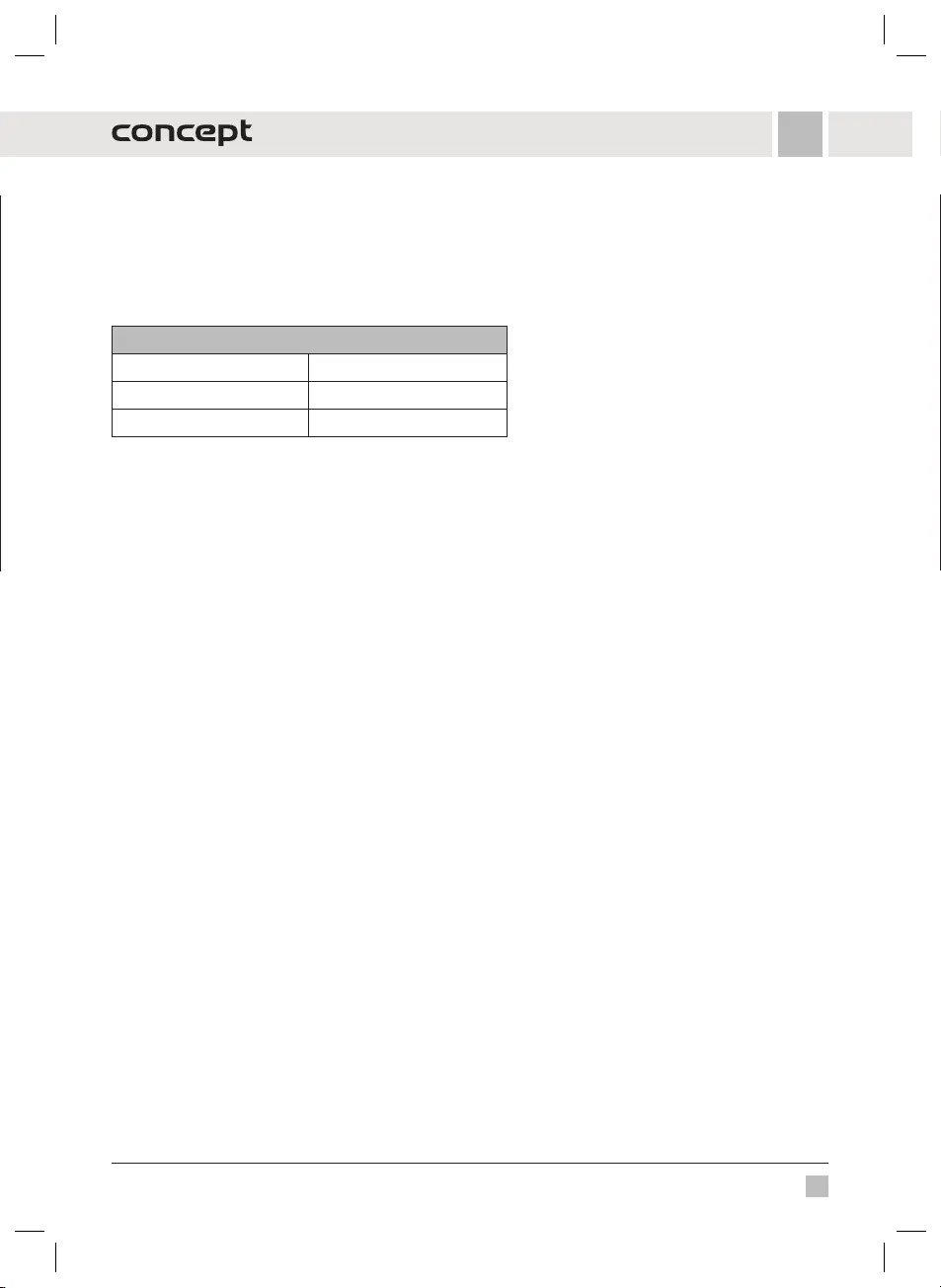 Dziękujemy za zakup produktu marki Concept i życzymy Państwu zadowolenia z naszego produktu przez cały okres