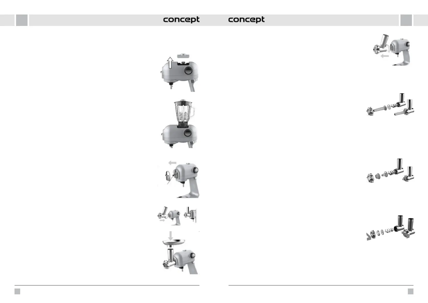 kotouč a nátrubek na plnění klobás. Dotáhněte rukou matici mlýnku