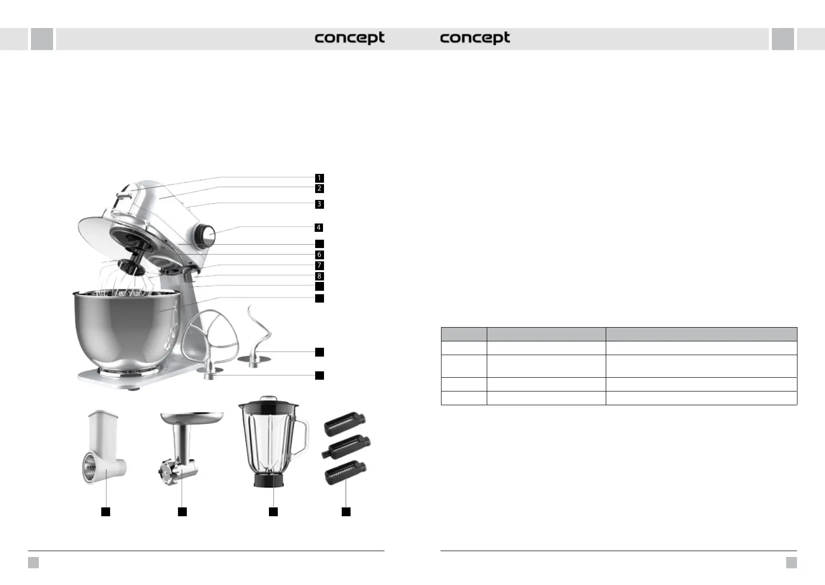 Setting the speed and using the whisks. The maximum quantity of the mixture must not exceed 1.1 kg.