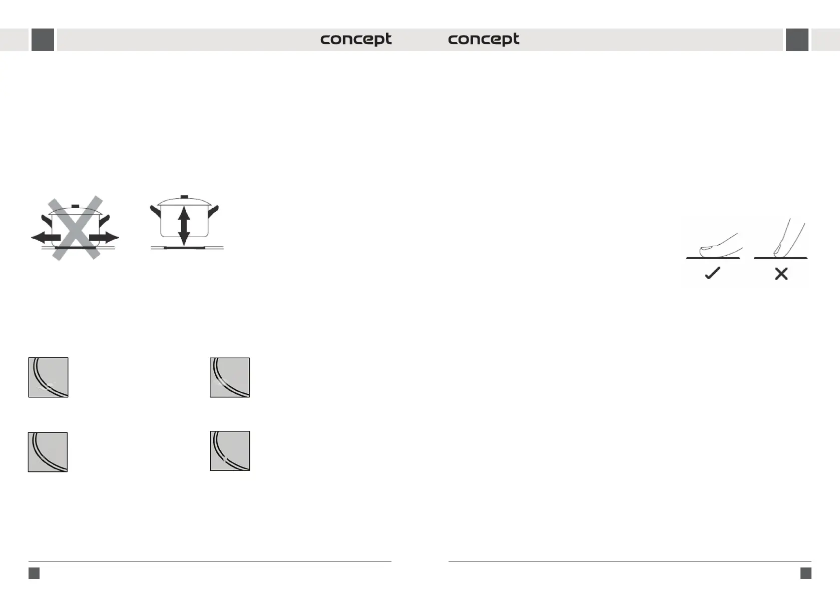 Cookware with coarse bottom can cause scratches of the hob. Always lift these objects up when you have to move