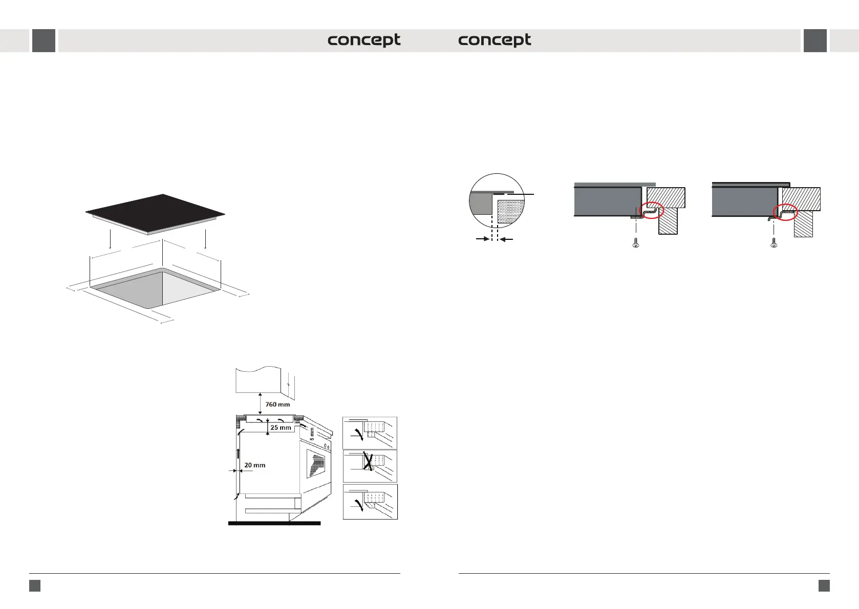 3. Plīts virsmas malās nodrošiniet vismaz 50mm attālumu