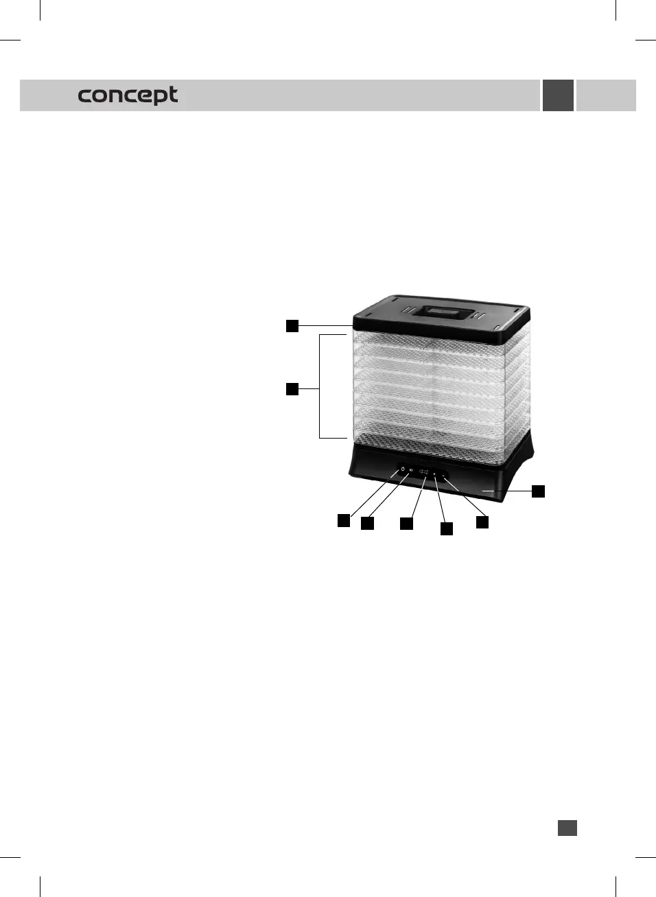 Spotřebič je určen k sušení potravin (ovoce, zeleniny, bylin, květin, hub, masa, atd.).