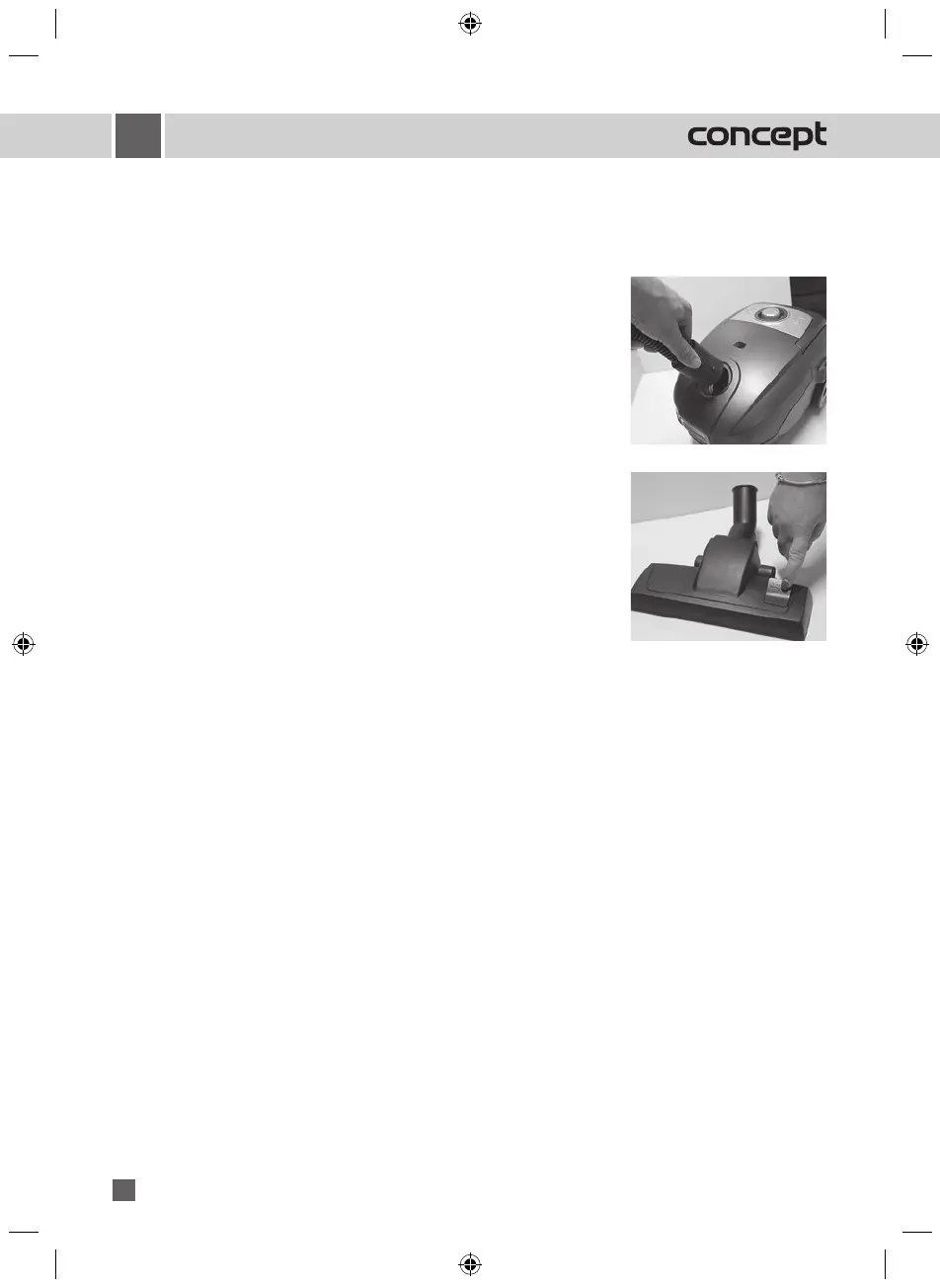 4. Поставяне на дюзата за почистване на пода към телескопичната тръ-