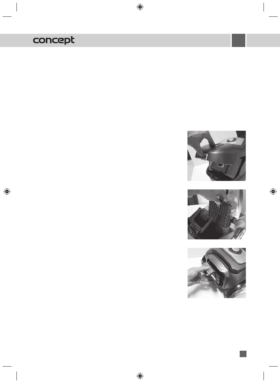 du sac à poussière et le verrouiller à l’aide du clapet. L’ouverture du