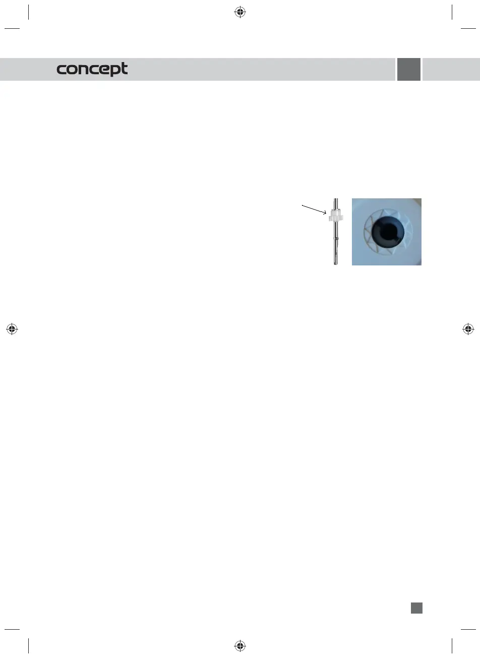 Pozor! Metlu nebo hnětací hák s kroužkem zasuňte do označeného otvoru (Obr. 1).