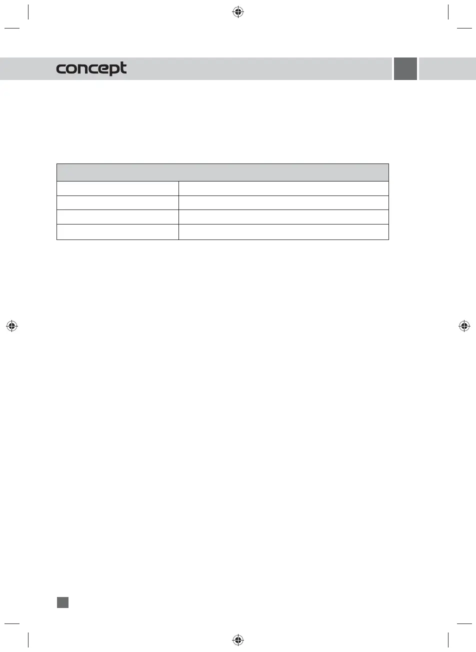 Ďakujeme vám, že ste si kúpili výrobok značky Concept a prajeme vám, aby ste boli s naším výrobkom spo-