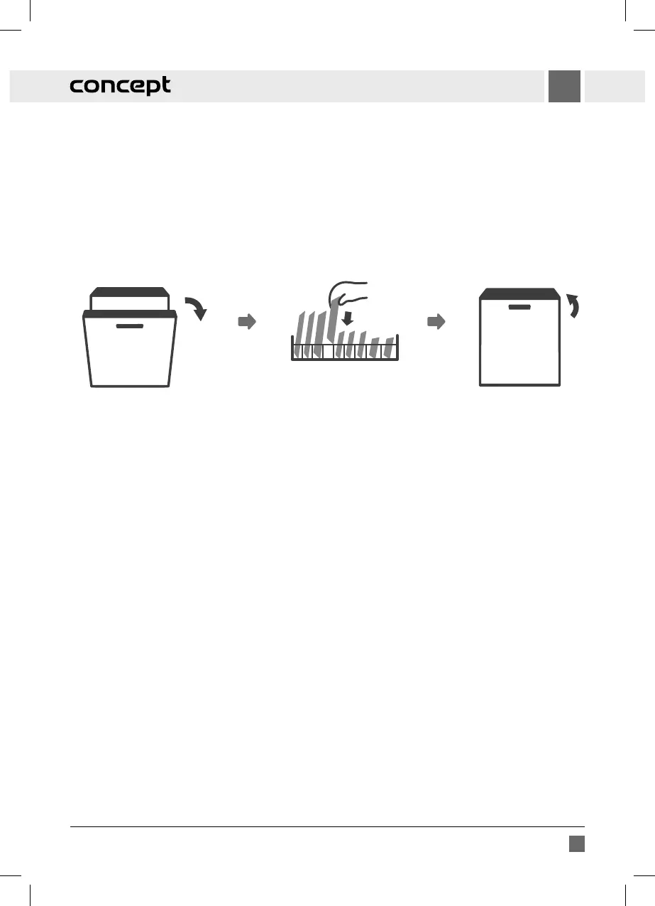 1. Mírně pootevřete dveře spotřebiče, mycí program bude pozastaven. Vyčkejte, dokud se ostřikovací ramena