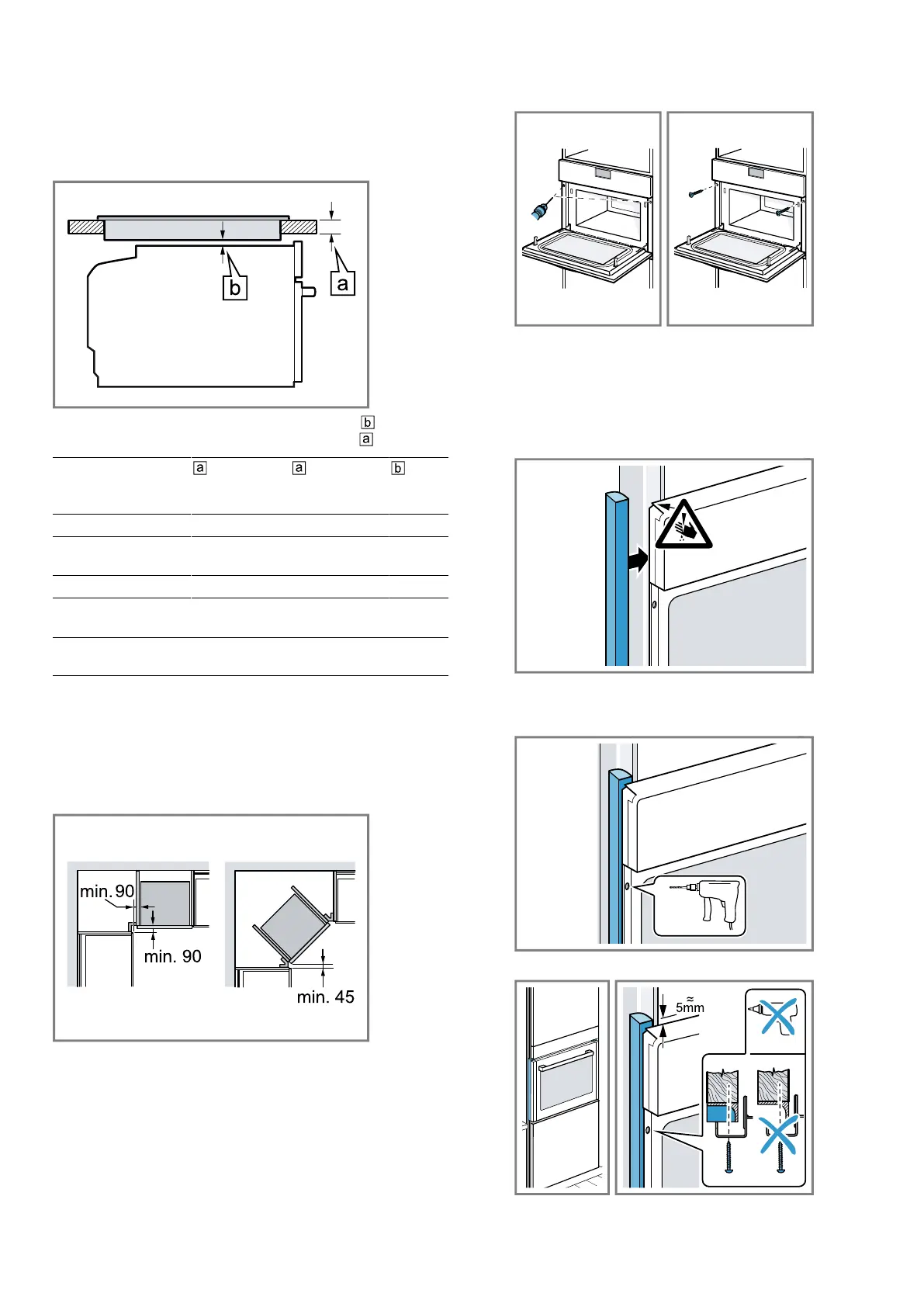 Neem de inbouwafmetingen en de veiligheidsafstanden