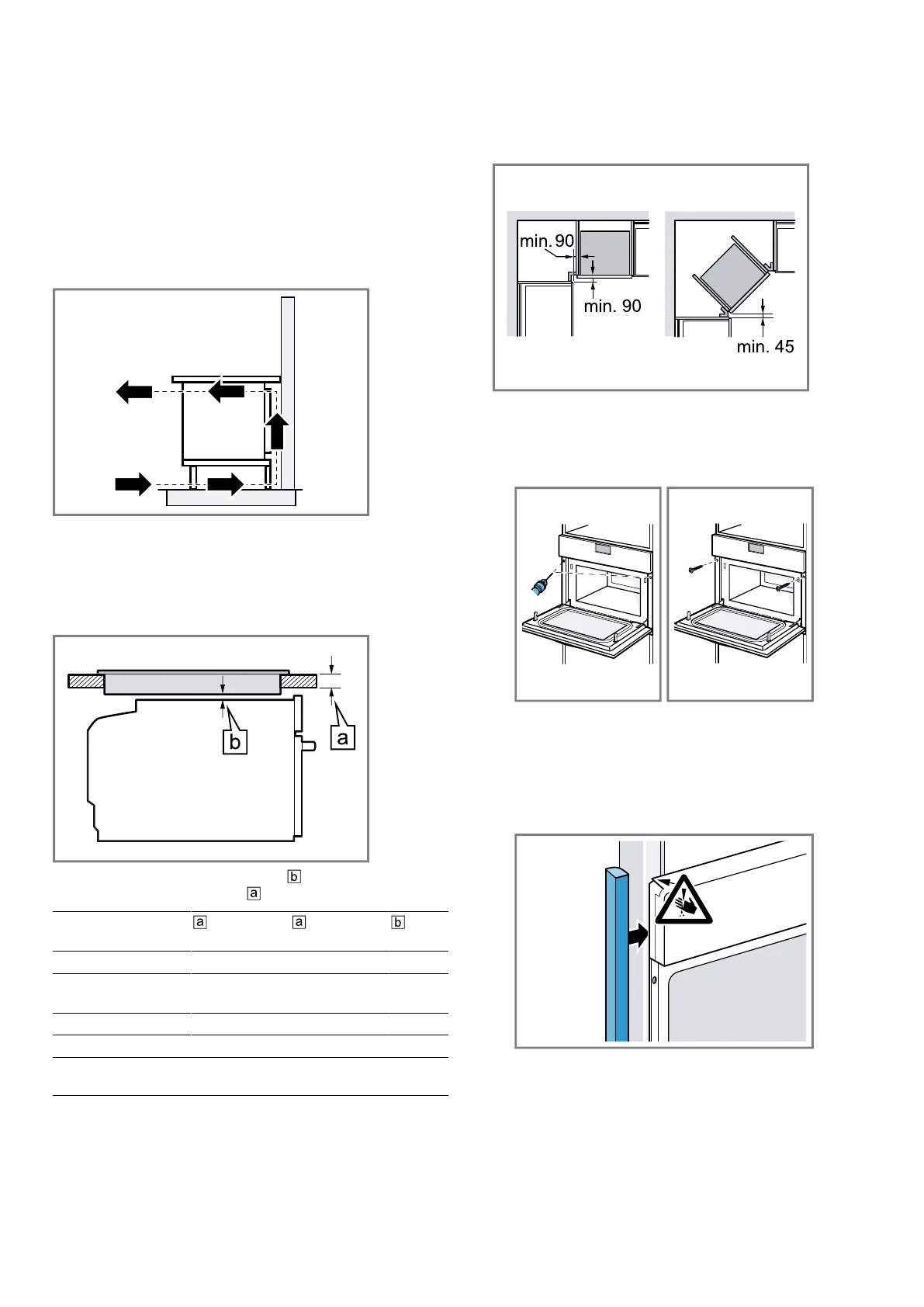 If the appliance is installed below a hob, the following