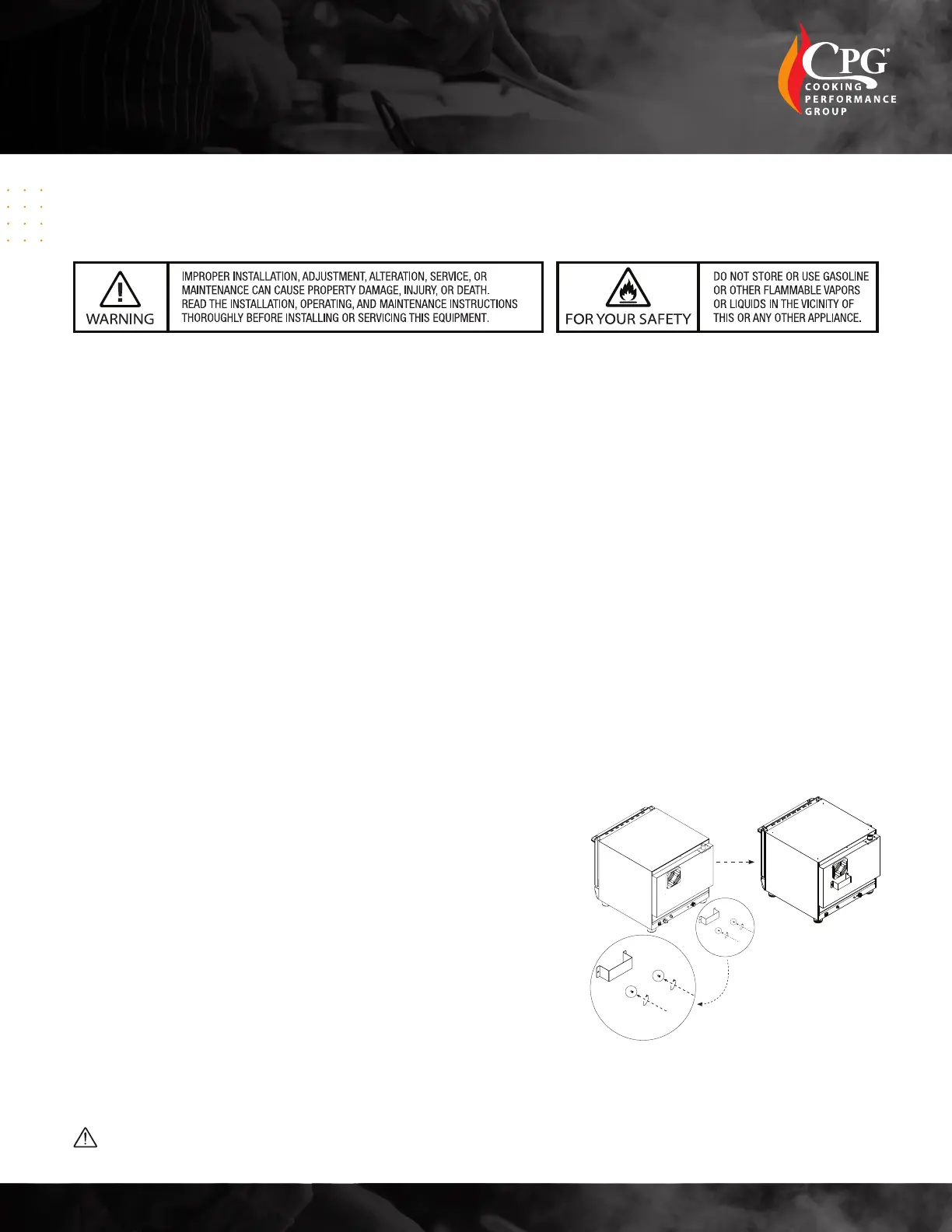 combustible surfaces. Ensure that all four legs are installed correctly before the operation of this oven.