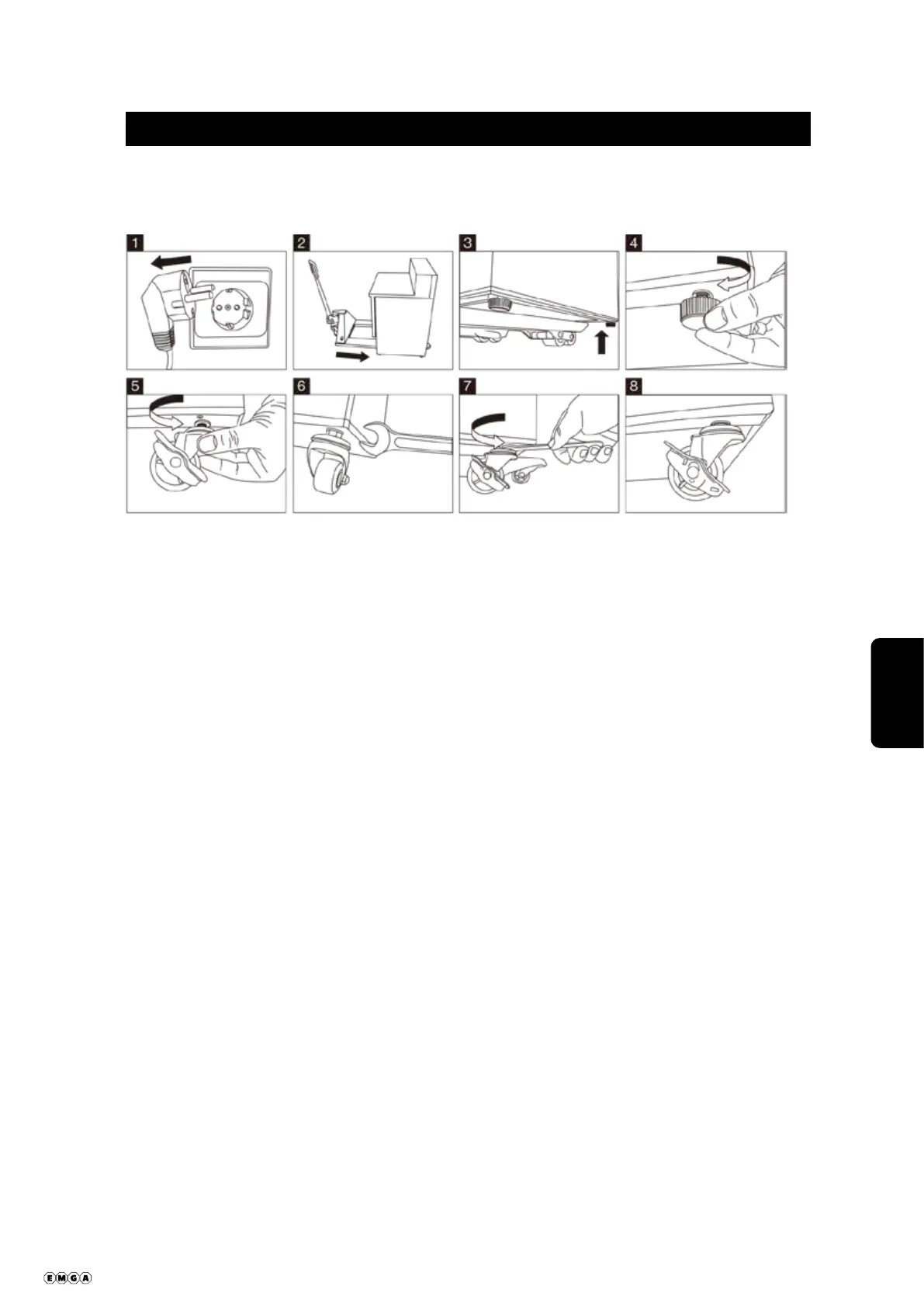 Procedure: Follow the 8 steps below to change the Saladettes footings to casters.