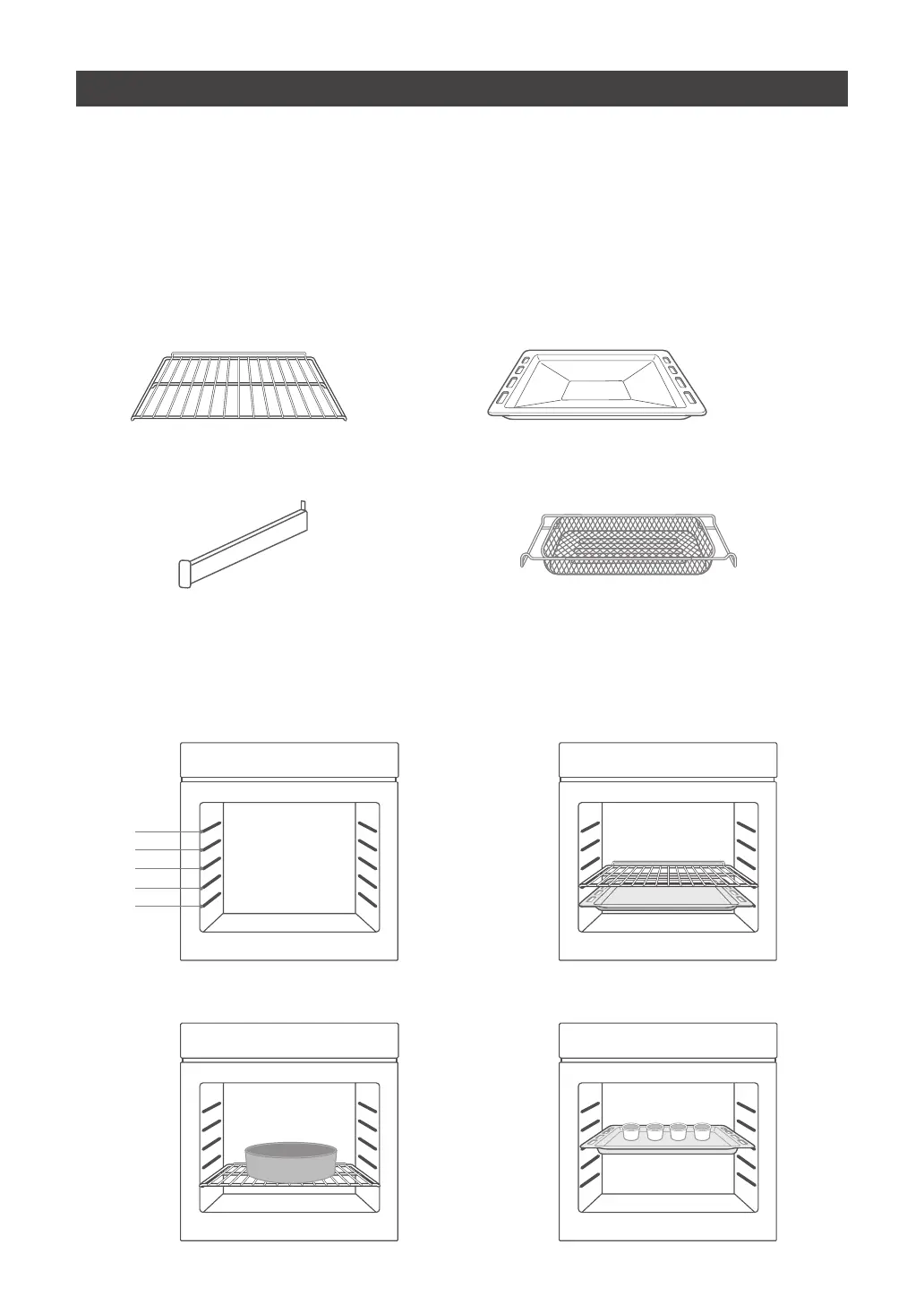 Para que el horno funcione correctamente, la rejilla y la bandeja solo se deberían