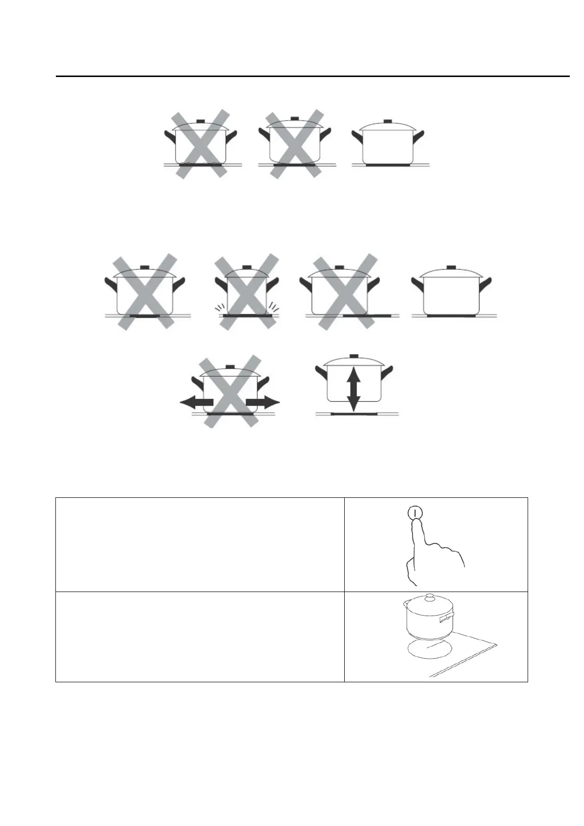 less than expected. Pot less than 140 mm could be undetected by the hob. Always centre your pan on