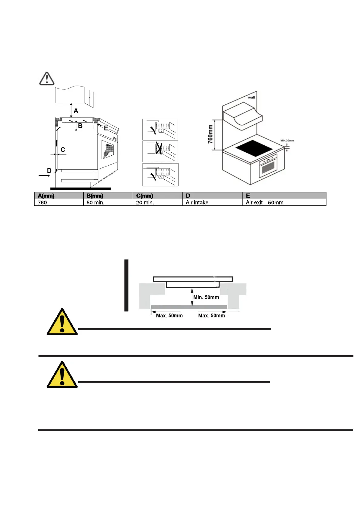 minimum distance of 50mm from the bottom of the hob. Follow the requirements below.