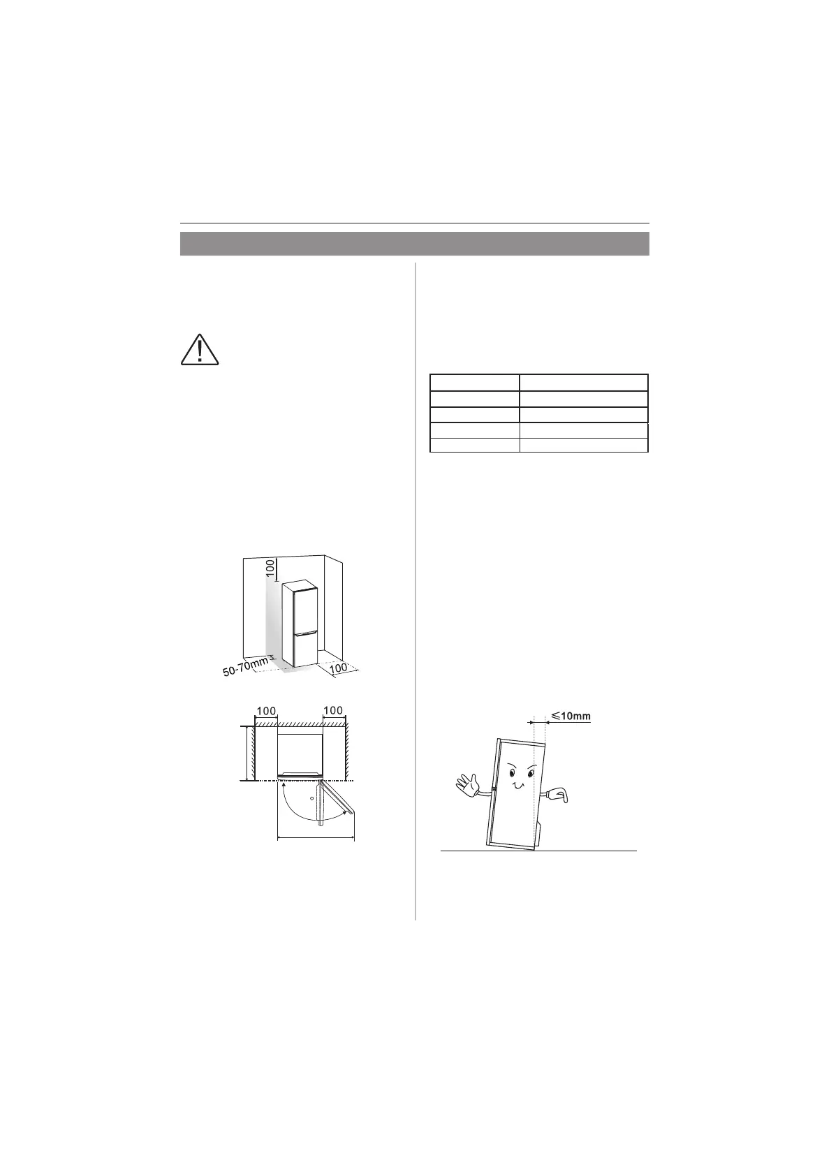 100mmfrom its side to the wall and a