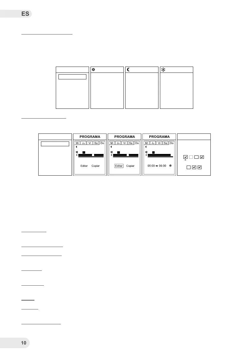 Ajustes de programa: En el menú de conguración del programa, el usuario puede editar el horario