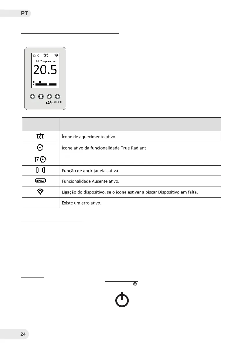 O radiador tem diferentes modos de funcionamento: OFF, Manual, Auto e Auto Modicado.
