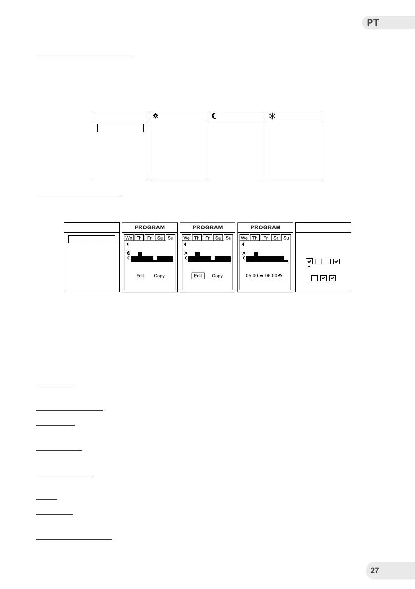 Conforto, Eco e Anti-congelamento. As temperaturas podem ser denidas entre desligado e 30ºC,