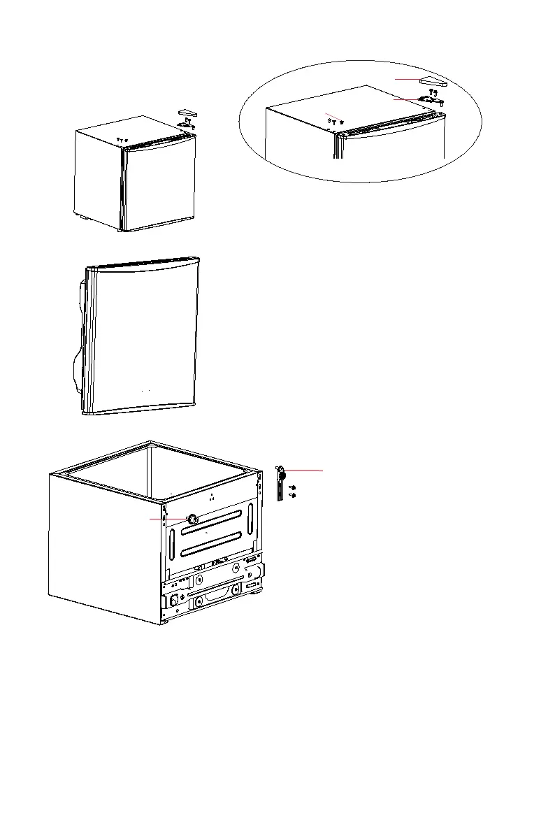 5)  Instale el quicio inferior y el pie de nivelación en el lateral inferior izquierdo del receptáculo y del