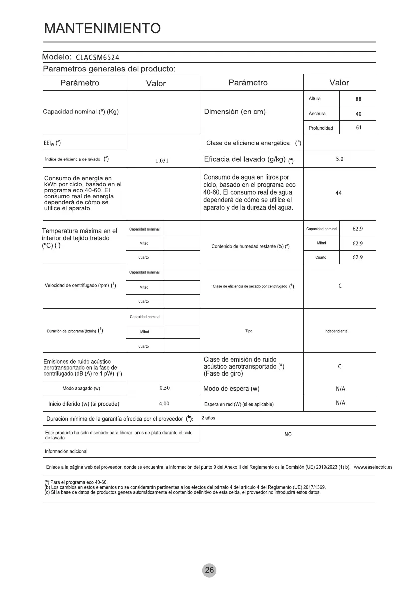 Bekijk gratis de handleiding van Corberó CLACSM6524, stel vragen en lees de antwoorden op veelvoorkomende problemen, of gebruik onze assistent om sneller informatie in de handleiding te vinden of uitleg te krijgen over specifieke functies.