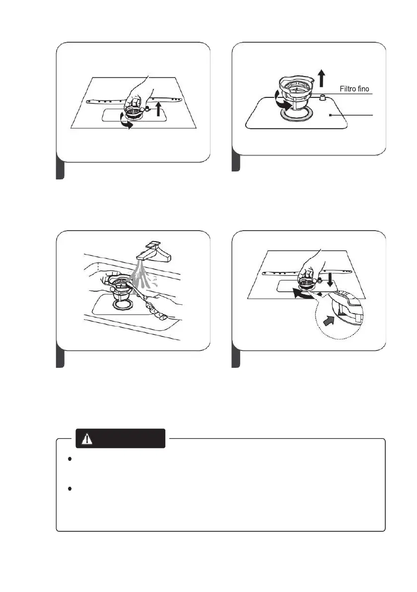 NUNCA utilize a máquina de lavar louça sem os filtros colocados. Uma