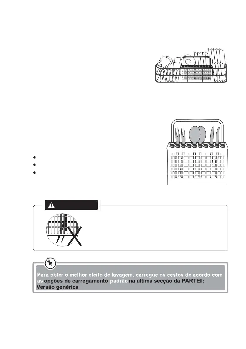 Para obter o melhor efeito de lavagem, carregue os cestos de acordo com