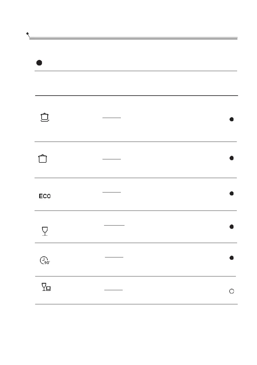 Tabela de ciclos de lavagem
