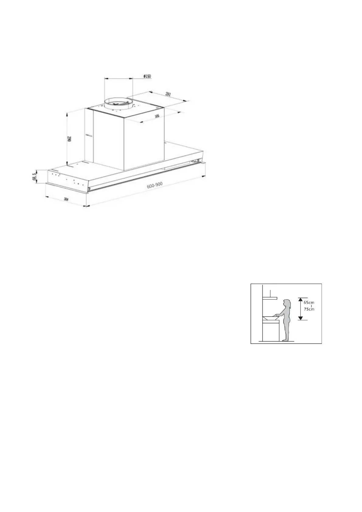 1.O exaustor deve ser colocado a uma distância de 65~75cm da superfície de