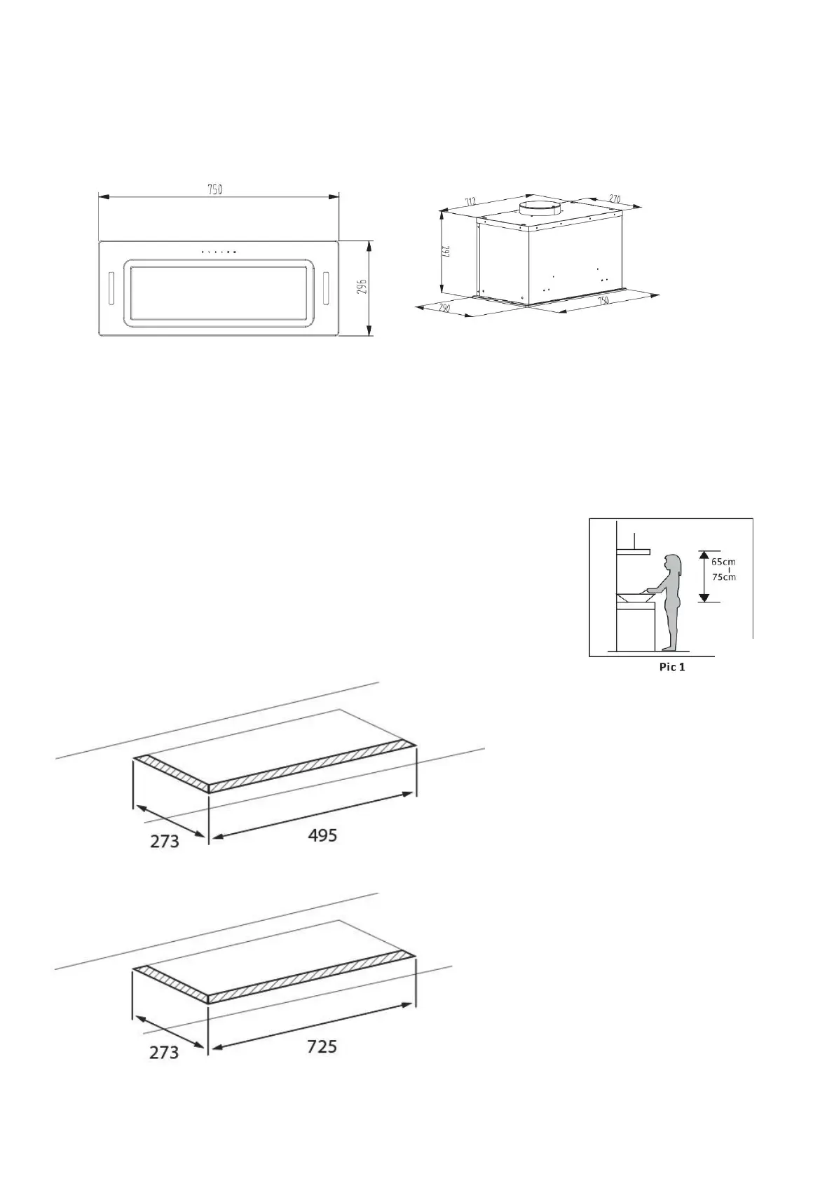 1.O exaustor deve ser colocado a uma distância de 65~75cm da superfície de