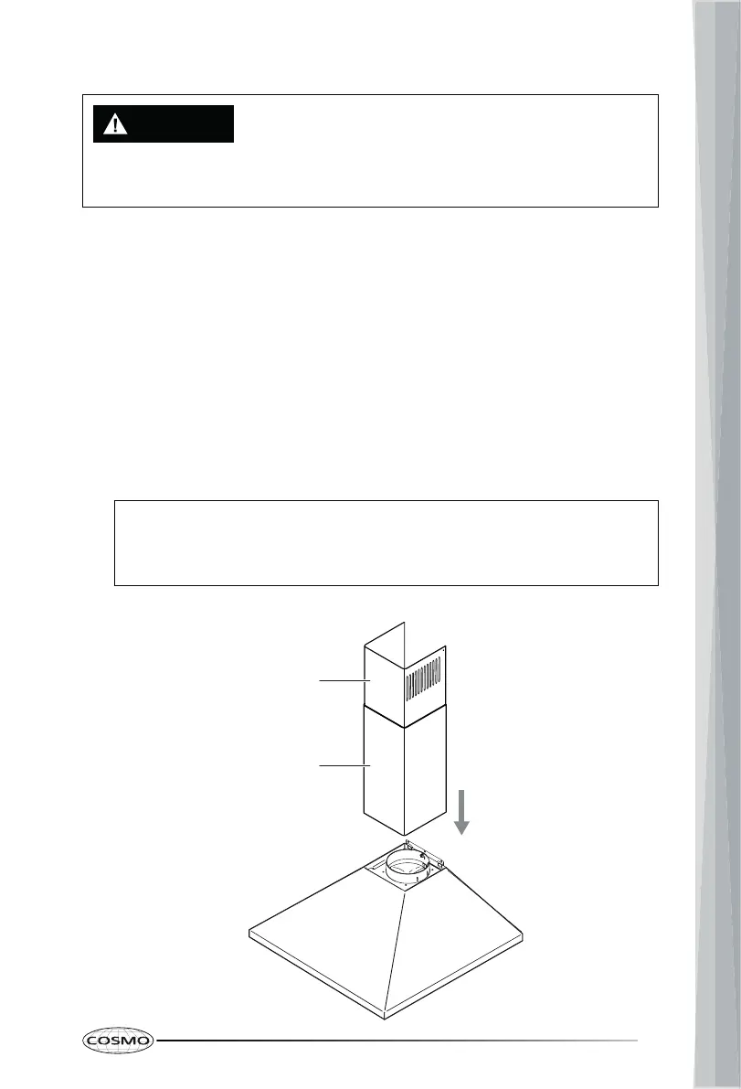2. Place both inner (upper) and outer (lower) chimneys onto hood. The inner