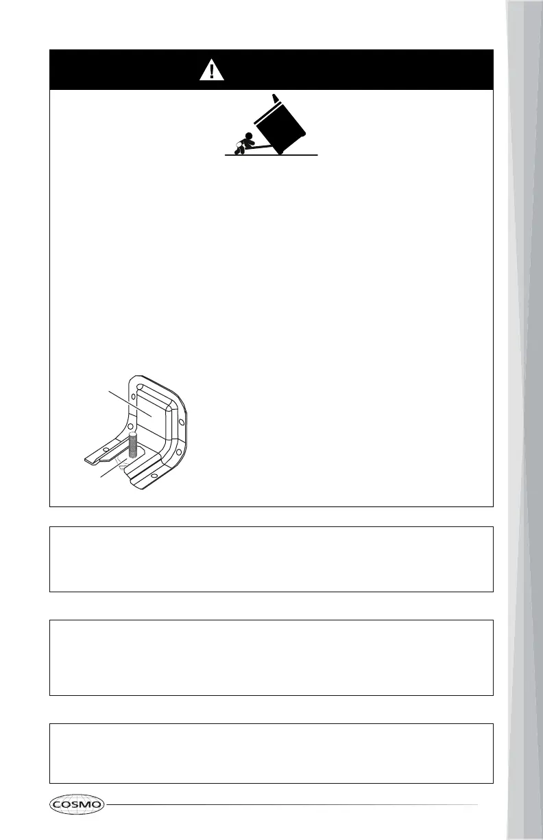 • Install anti-tip bracket to floor or wall per installation instructions.