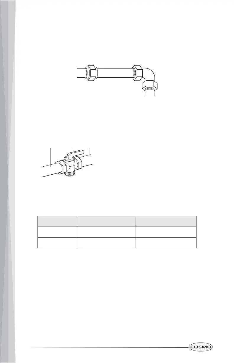 in-line connection to the cooktop. The rigid pipe must be level with the