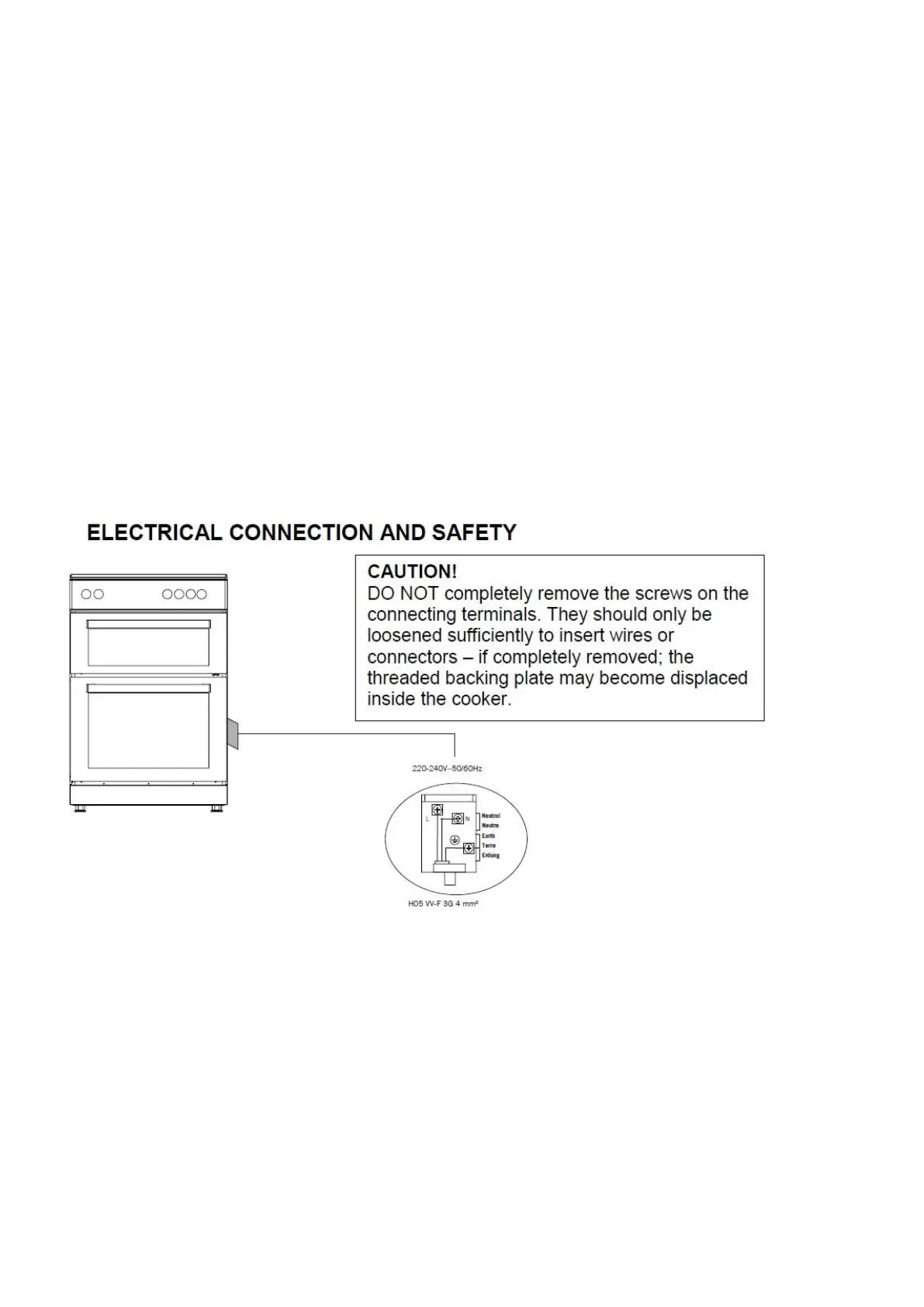 Earth continuity. The electrical safety of this appliance can only be guaranteed if the cooker is correctly installed and