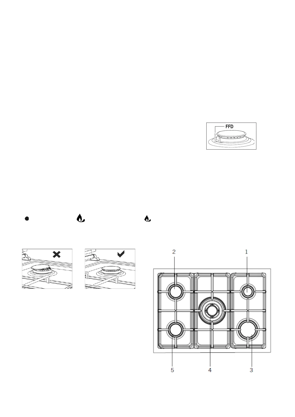 Before operating your hob, please make sure that the burner caps are well positioned. The right placement of